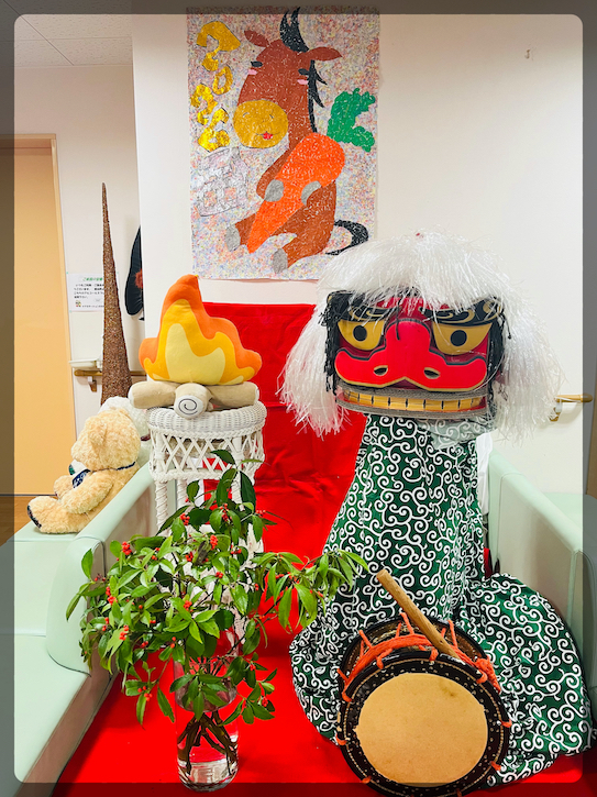 ます。獅子舞・干支の貼り絵・